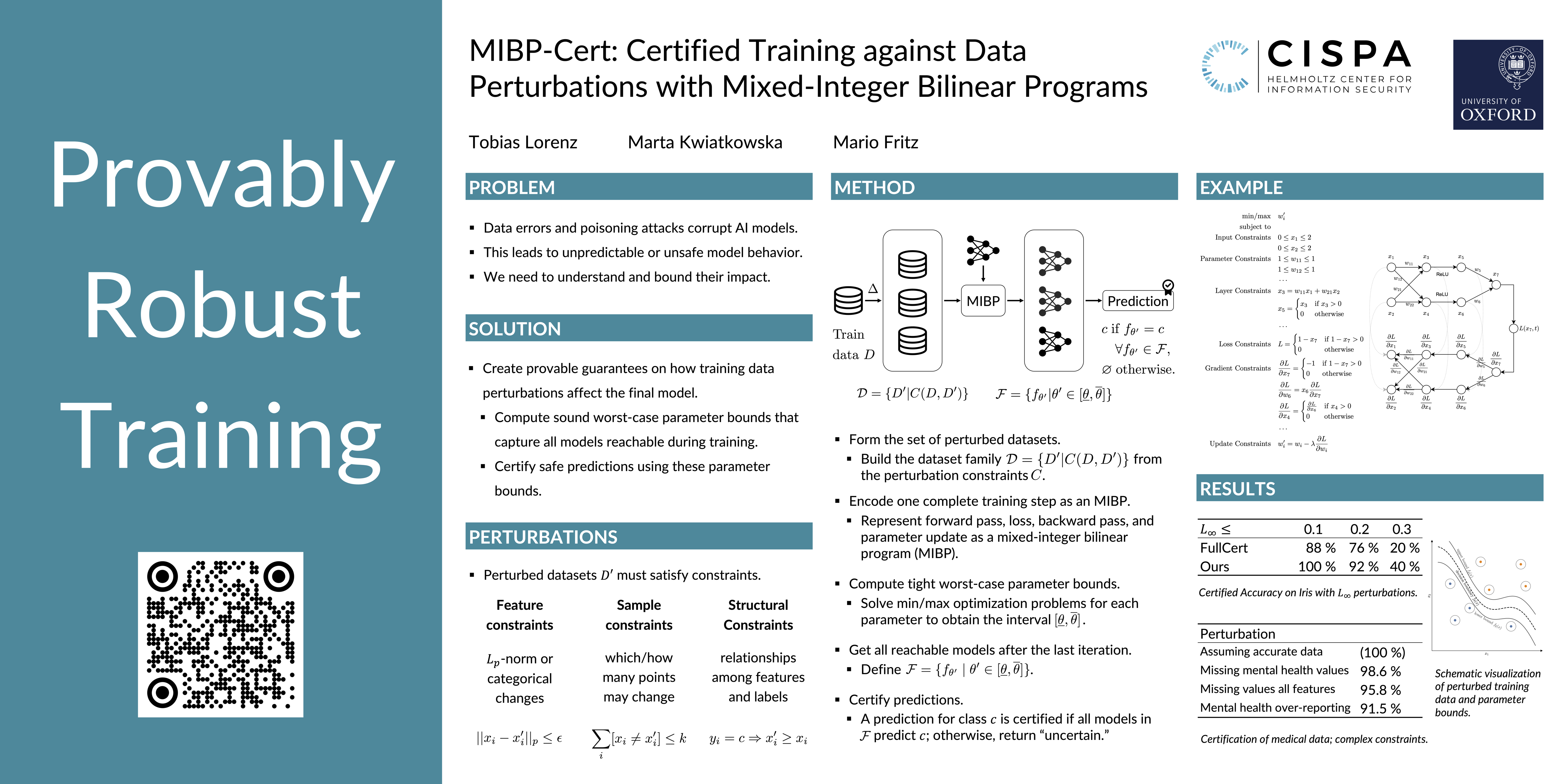 title = {MIBP-Cert: Certified Training against Data Perturbations with Mixed-Integer Bilinear Programs},